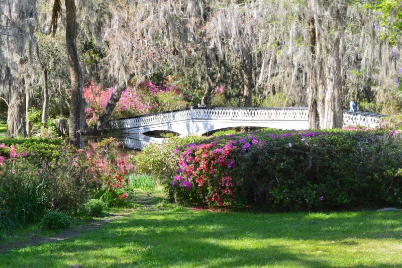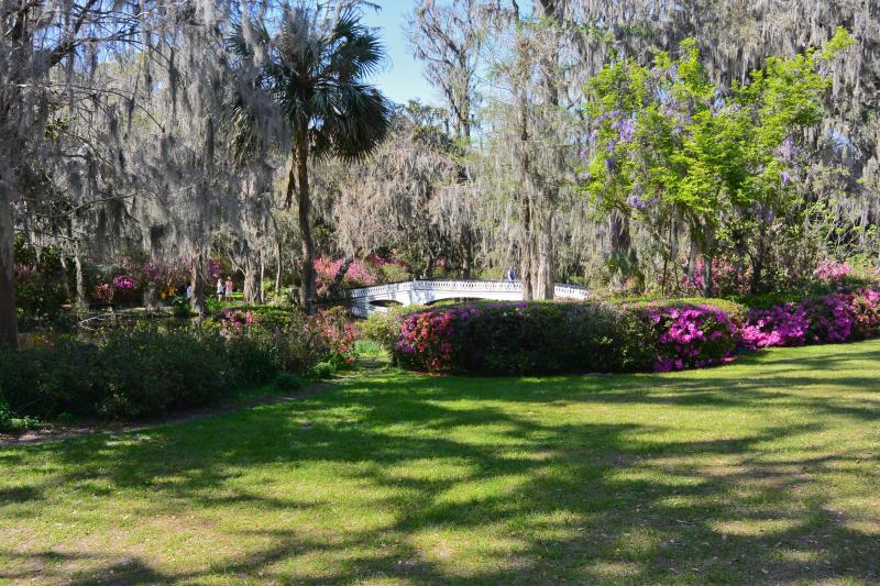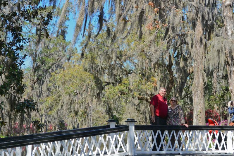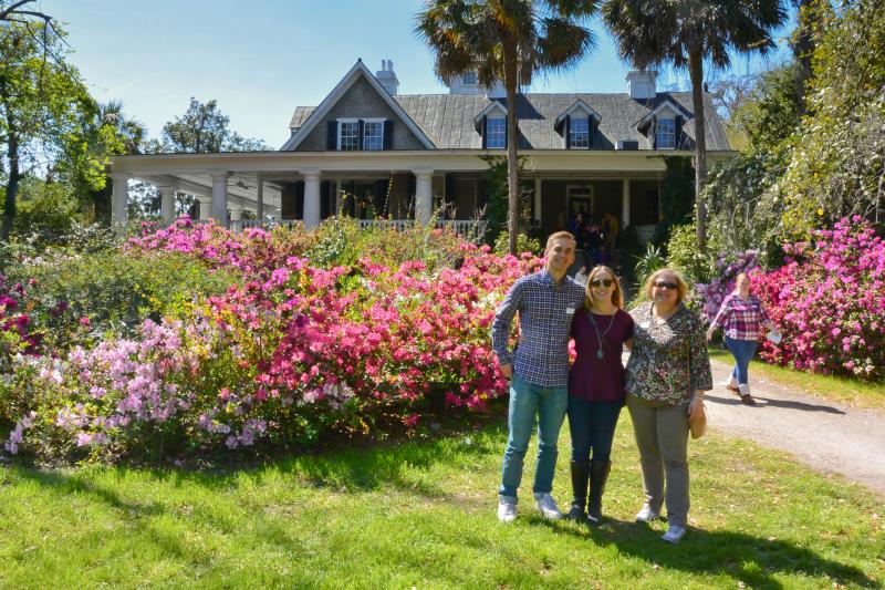 The next morning we drove together to Charleston, stopping first at the Magnolia Plantation and Gardens. Mike and Liane’s wedding ceremony will be on the Long White Bridge Lawn, near the Plantation House. The reception will in the Carriage House. The plantation was in full bloom with all of its flowering tree’s at their prime. It was a beautiful site. The place was full of visitors like us. We stopped for a light lunch and headed to Charleston.