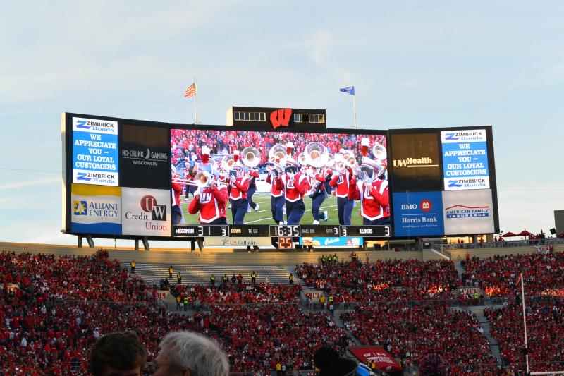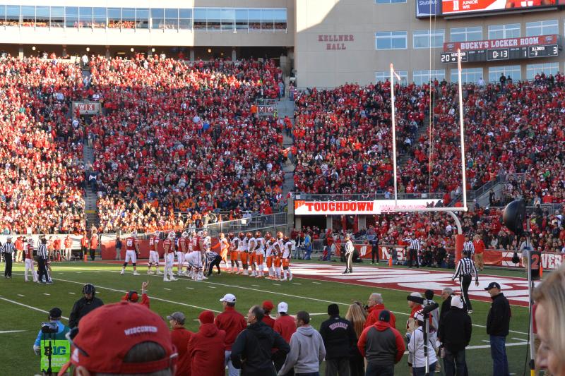 We visited Liz in Madison on Homecoming Weekend.  Even though it was cool, we had lots of fun at the Wisconsin vs Illinois football game.  We sat on the 35 yard line and saw the team played dominate the Illini.  ESPN box score.   After the game, we went out to Karben4 Brewing– a nice, local, pub.  We went shopping at Target and called it a night.  We spent the night at the somewhat remote  Holiday Inn Madison At The American Center.  If everything else is booked, I would go back here.  It was nice and new, and close to the highway.  But far from campus.