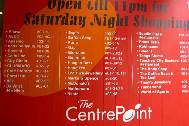 | Camera: CASIO COMPUTER CO.,LTD EX-Z750 | Date: 10/14/07 9:04 PM | Resolution: 3072 x 2048 | Exp. Time: 1/125s | Aperture: 2.8 | Focal Length: 7.9mm | Latitude: N 1°18'2.77" | Longitude: E 103°50'22.31" | Altitude: 71 metres | Caption: Orchard Street - CentrePoint | Keywords: Mount Emily Park Singapore 0.96 Km to Mount Emily Park in Singapore geotagged geo:lat=1.300769 geo:lon=103.839530 | See map |