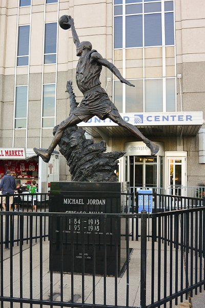 Michael Jordan statue at Gate 4. Chicago Blackhawks vs New York Rangers at the United Center 9/26/14