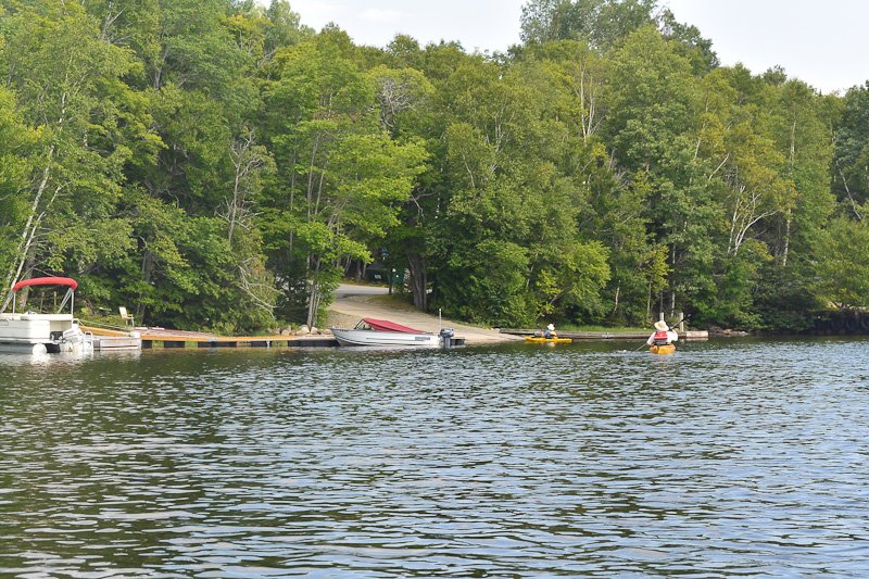 18 Ian and Leslie landing at South Arm camp boat ramp. Kayak South Arm Lower Richardson Lake |
