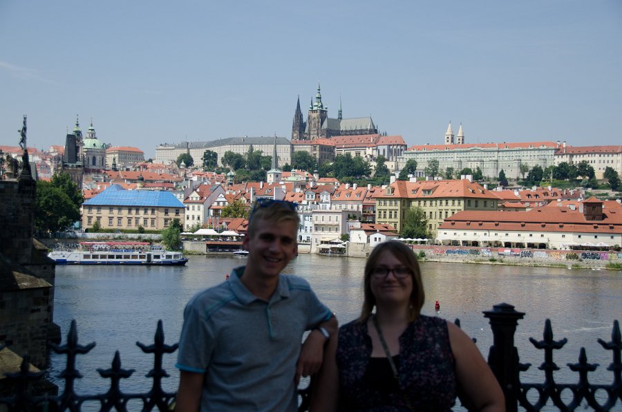 7 Prague Castle Liz and Mike. Prague Castle (background), Charles Bridge / Karlův most |