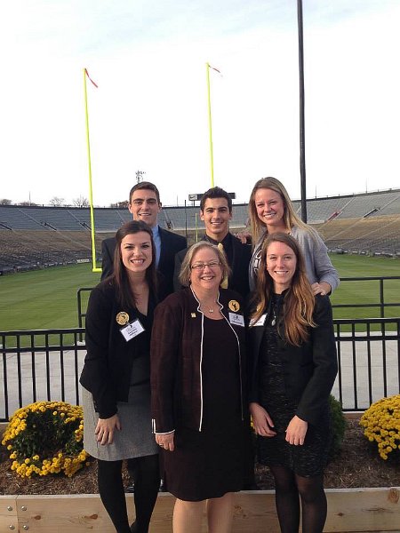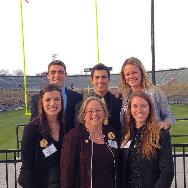 40Cathie and Hosts at Ross-Ade Stadium Cathie with Old Master's Hosting team: Stephanie, Nick, Tom, Melissa and Jess in the South end zone of Ross-Ade Stadium. Purdue Old Masters, Nov 2014