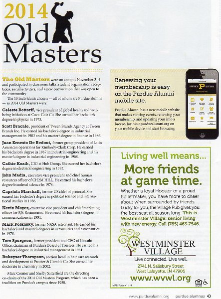 172014 Old Masters 2014 Old Masters program listed in the monthly Purdue Alumni Magazine. Purdue Old Masters, Nov 2014