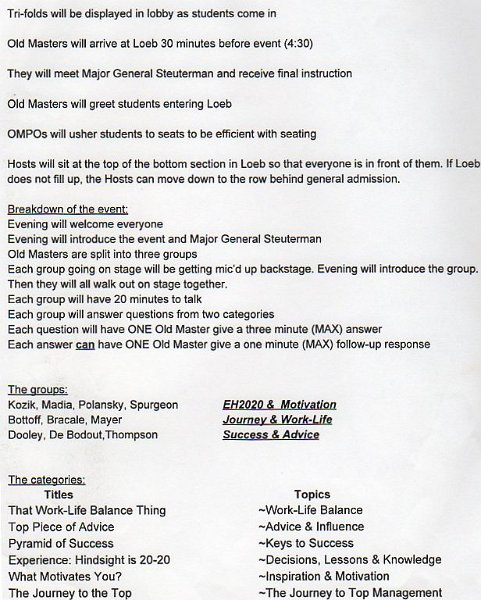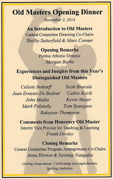 21Old Masters Opening Dinner Program for the opening night dinner. Purdue Old Masters, Nov 2014