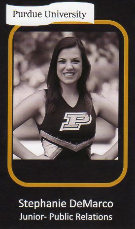 2Cathie and Hosts at Ross-Ade Stadium Cathie with Old Master's Hosting team: Stephanie, Nick, Tom, Melissa and Jess in the South end zone of Ross-Ade Stadium. Purdue Old Masters, Nov 2014