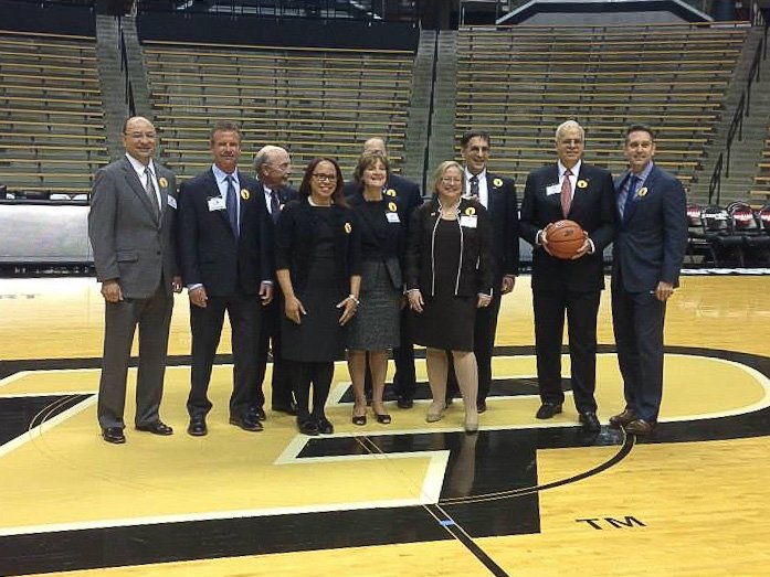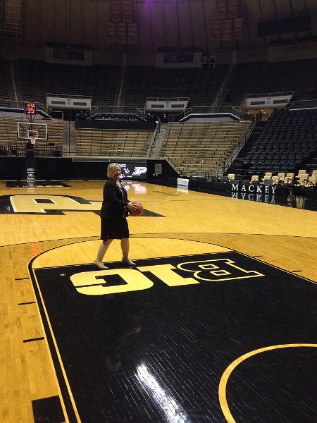 35Cathie and Old Masters at Mackey Cathie and the rest of the Purdue Old Masters on the basketball floor in Mackey Arena, Nov 2014