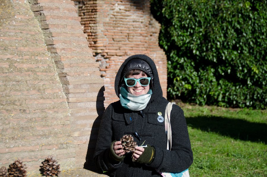 154Nora Nora collecting Pine Cones. Walking through the Ostia Antica archeological site