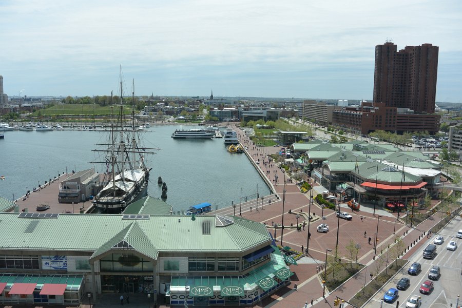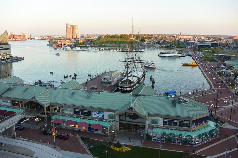 4 Harborplace Pratt Street Pavilion, USS Constellation. View of Baltimore Inner Harbor from Renaissance Hotel |