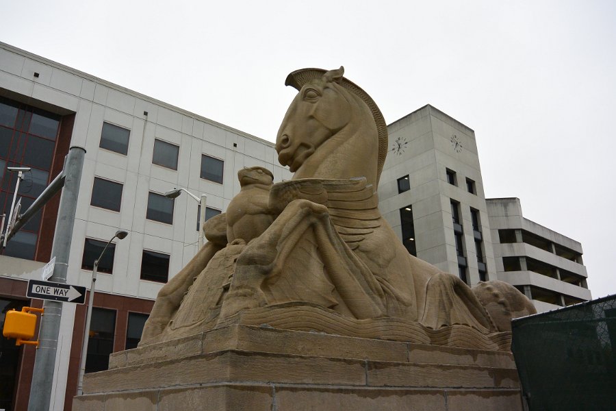 39 Limestone horse and eagle in front of Baltimore War Memorial |
