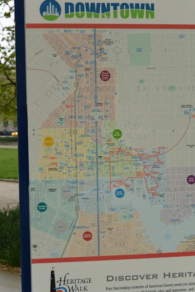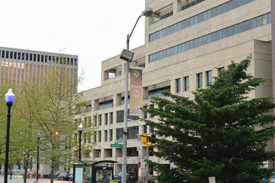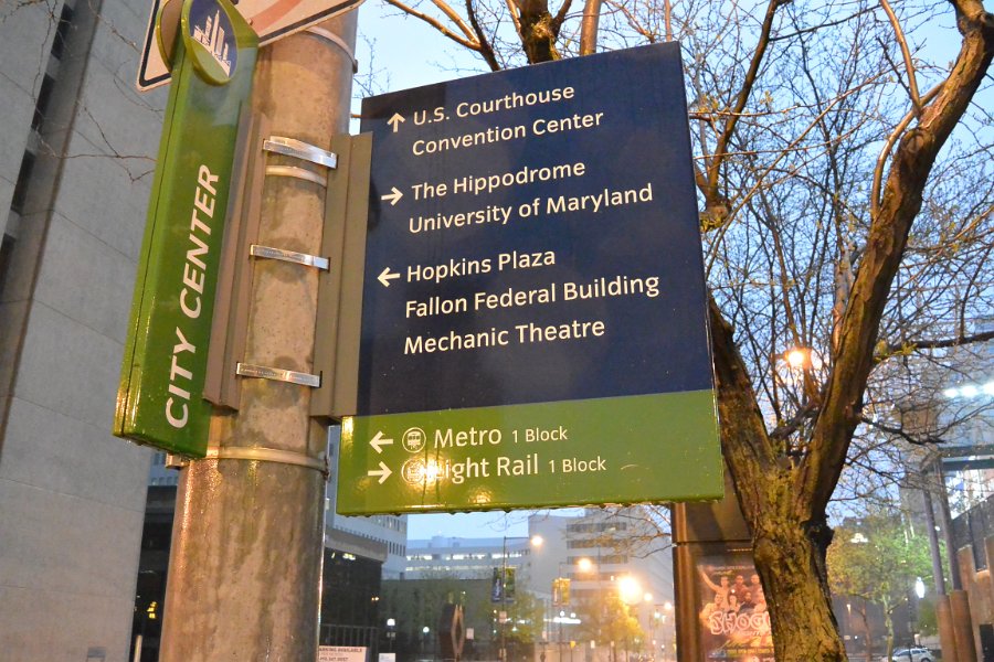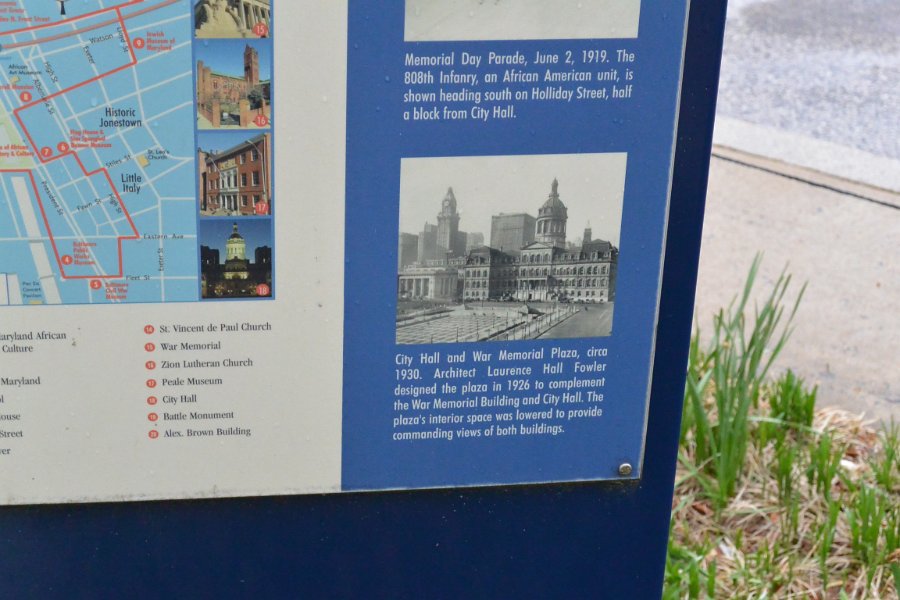 51 Downtown Map, sign in front of the Baltimore City Hall |