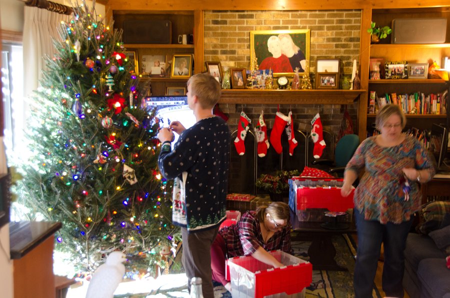 3 Decorating the Christmas tree -- the kids are home from school. |
