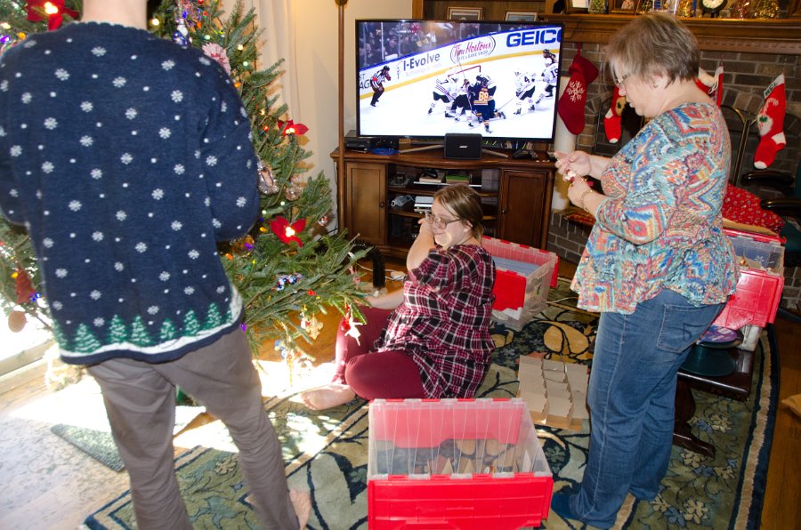 7 Decorating the Christmas tree -- the kids are home from school. |