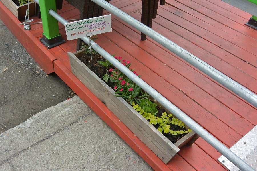 10Ne pas toucher ! Ces fleurs vous rendent allergique au gluten ! Ne pas toucher !. Walking East and South along rue Saint-Denis, Quartier Latin. Walking Montreal Centre-Ville and Quartier des Spectacles areas