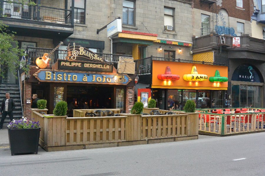 13Bistro à Jojo Bistro à Jojo. Walking East and South along rue Saint-Denis, Quartier Latin. Walking Montreal Centre-Ville and Quartier des Spectacles areas