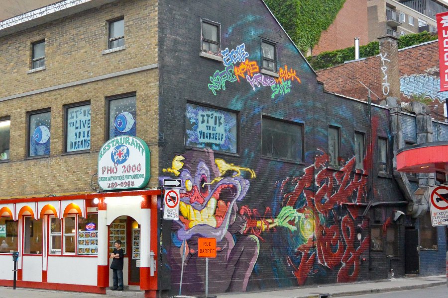 16Pho 2000 Restaurant Pho 2000. Walking West and South along rue Sainte-Catherine, Quartier Latin. Walking Montreal Centre-Ville and Quartier des Spectacles areas