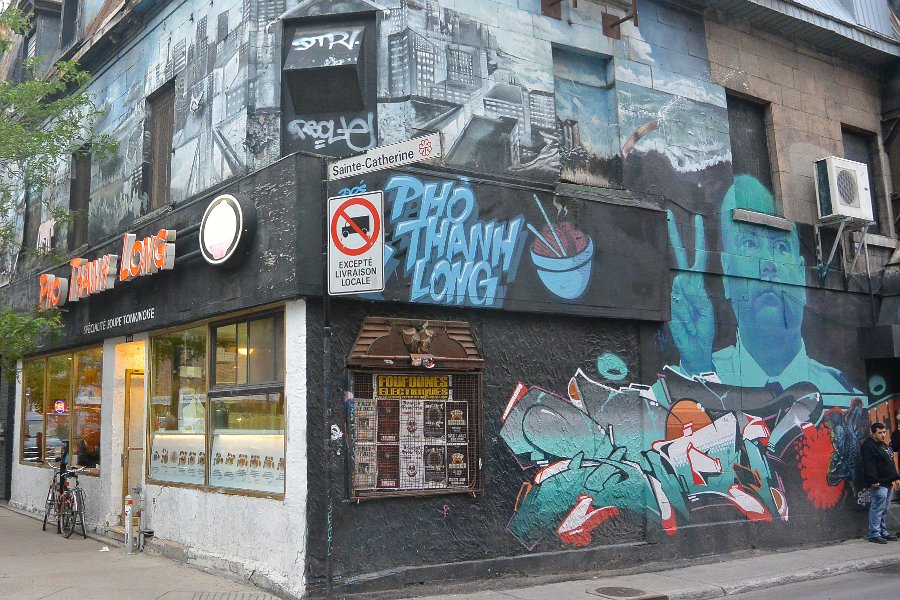 18Thanh-Long Pho Restaurant Thanh-Long Pho. Walking West and South along rue Sainte-Catherine, Quartier Latin. Walking Montreal Centre-Ville and Quartier des Spectacles areas