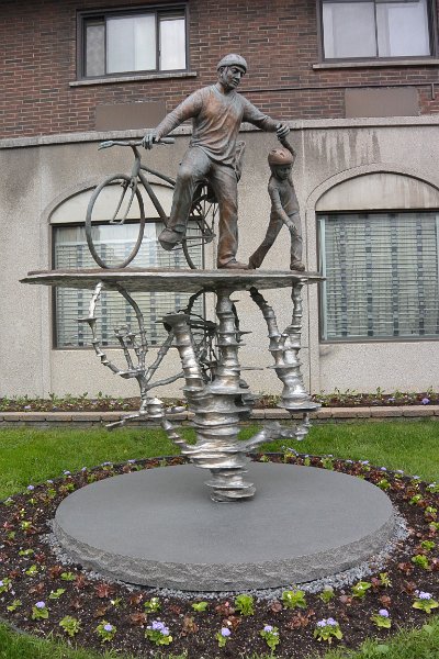 2BleuCycle BleuCycle sculpture, Fonderie d'art d'Interness, 2012. Near Saint-Laurent. Walking North and East along rue Sherbrooke in Montréal's Centre-Ville and Quartier des Spectacles areas