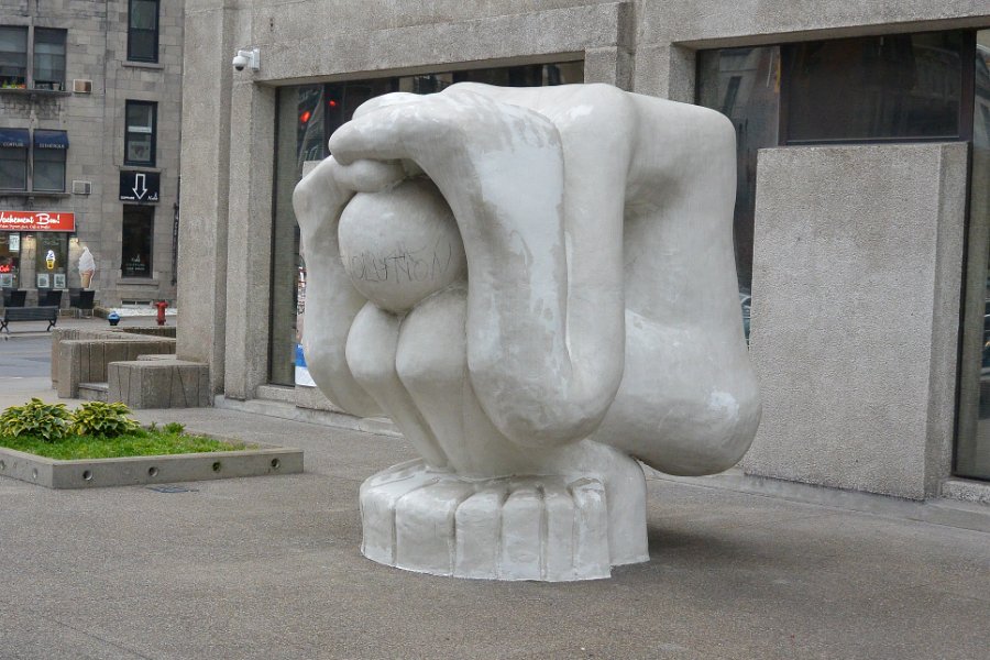 7Le Malheureux Magnifique Le Malheureux Magnifique sculpture by Pierre Yves Angers, 1972, found at the corner of rue Saint-Denis and Sherbrooke. Walking North and East along rue Sherbrooke in Montréal's Centre-Ville and Quartier des Spectacles areas