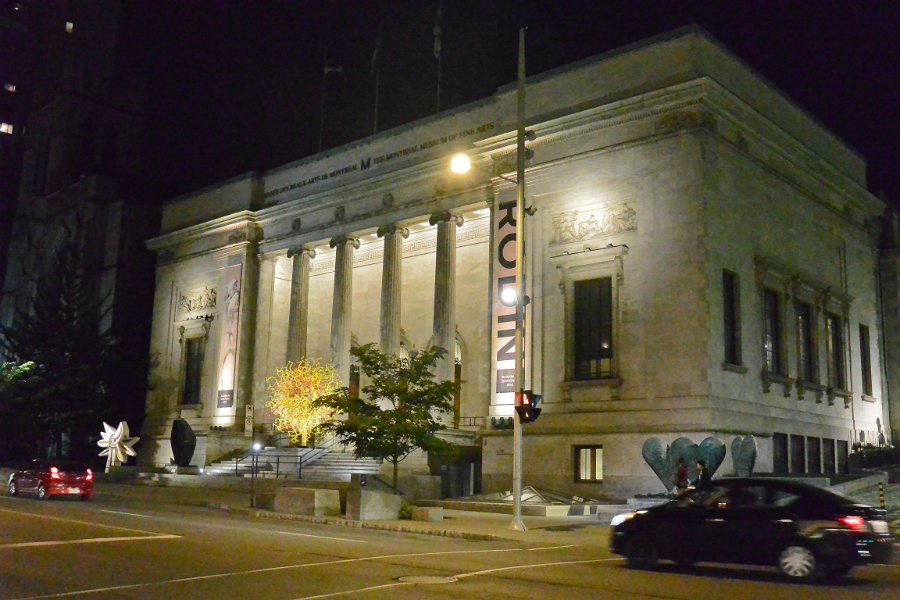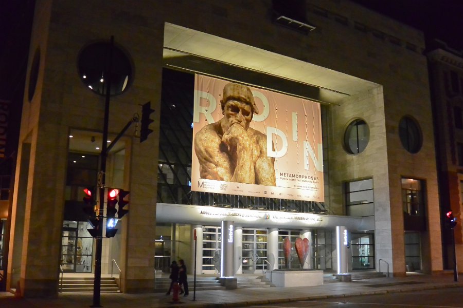 24Musée des Beaux Arts Rodin exhibit poster on the Musée des Beaux Arts, Desmarais Pavilion. Walking along Sherbrooke Street, Rue Sherbrooke.