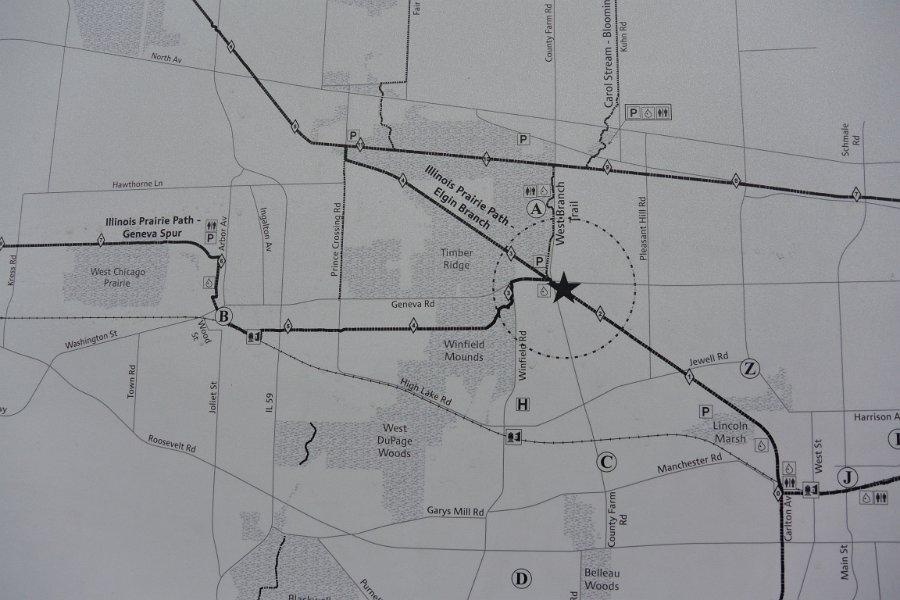 12 Geneva Spur. Biking the Prairie Path Grand Tour: 30 mile loop starting in Warrenville, then Wheaton, West Chicago, Geneva, Batavia, I-88 then back to Warrenville.