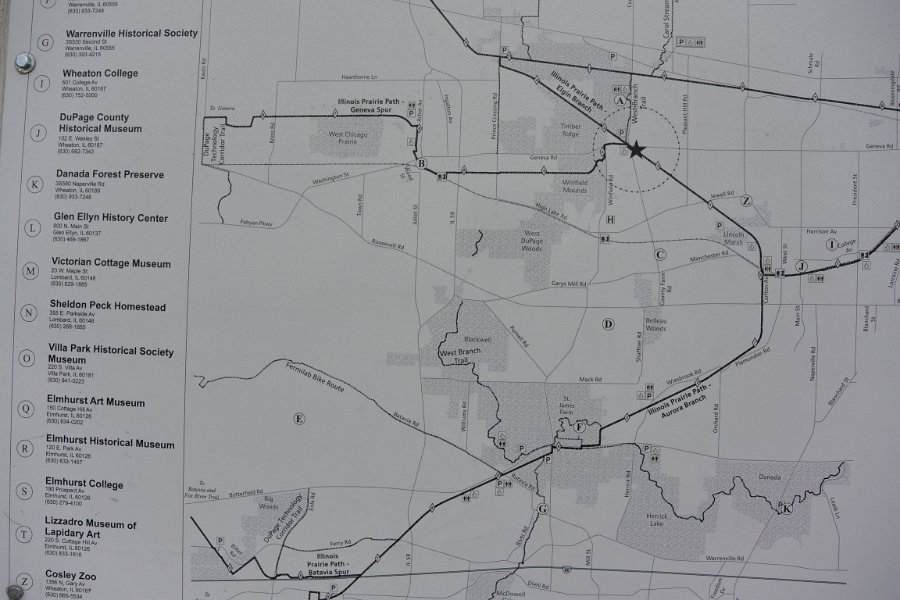 20 Geneva Spur. Biking the Prairie Path Grand Tour: 30 mile loop starting in Warrenville, then Wheaton, West Chicago, Geneva, Batavia, I-88 then back to Warrenville.