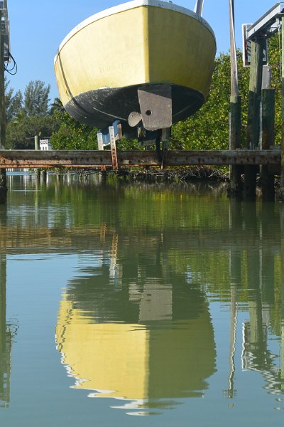 2Yellow Boat Yellow Boat, on dry docks at the Southern end of Roosevelt Channel. Heading South along Roosevelt Channel. Kayaking from Tween-waters Inn down Roosevelt Channel, then around the far side of Buck Kay. No wind, tide coming in.
