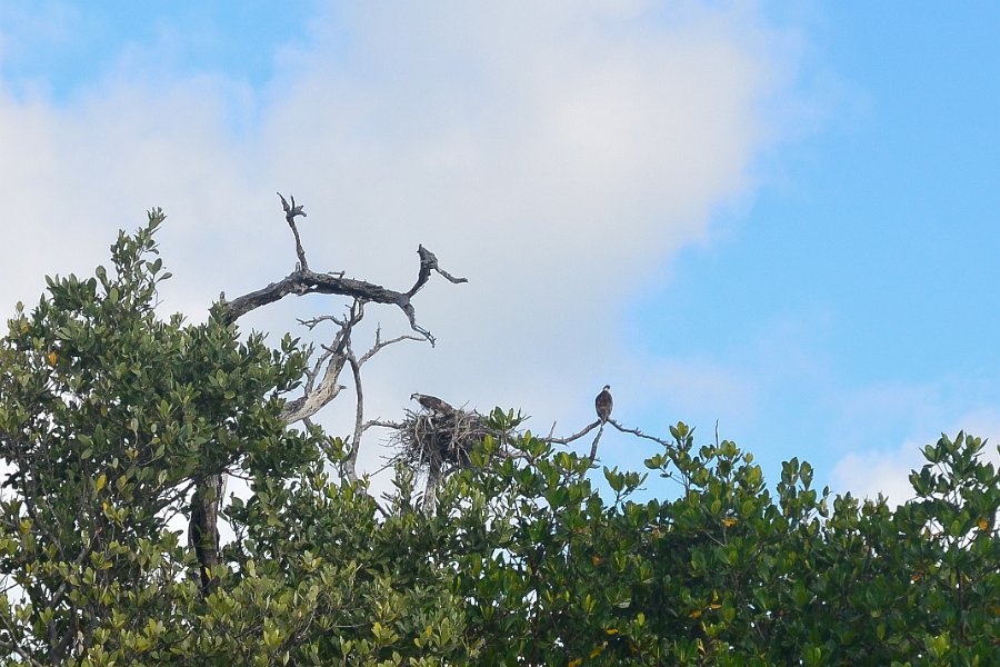 4Osprey Two Osprey at nest. Heading North along the far side of B uck Key. Kayaking from Tween-waters Inn down Roosevelt Channel, then around the far side of Buck Kay. No wind, tide coming in.