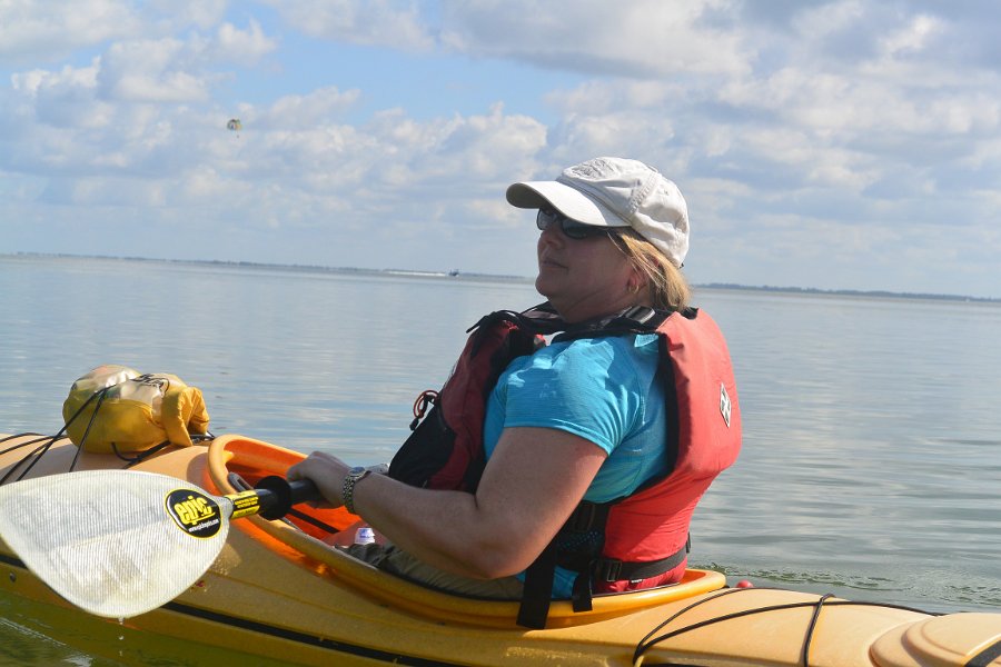 8Cathie Cathie. Rounding the Northern Tip of Buck Key, heading back. Kayaking from Tween-waters Inn down Roosevelt Channel, then around the far side of Buck Kay. No wind, tide coming in.
