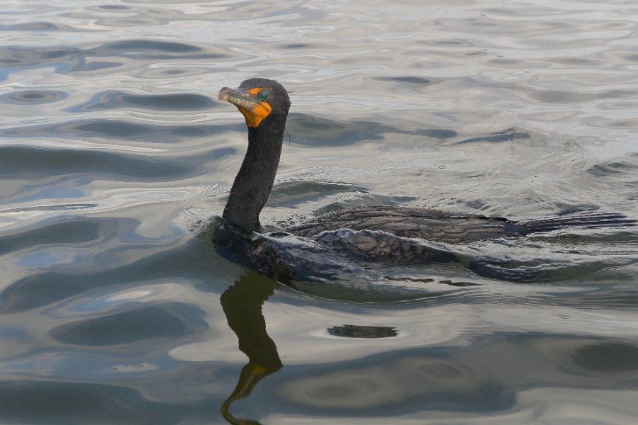10Cormorant Cormorant just landed near tjhe boat. Using the kayak to help with fishing. Rounding the Northern Tip of Buck Key, heading back. Kayaking from Tween-waters Inn down Roosevelt Channel, then around the far side of Buck Kay. No wind, tide coming in.