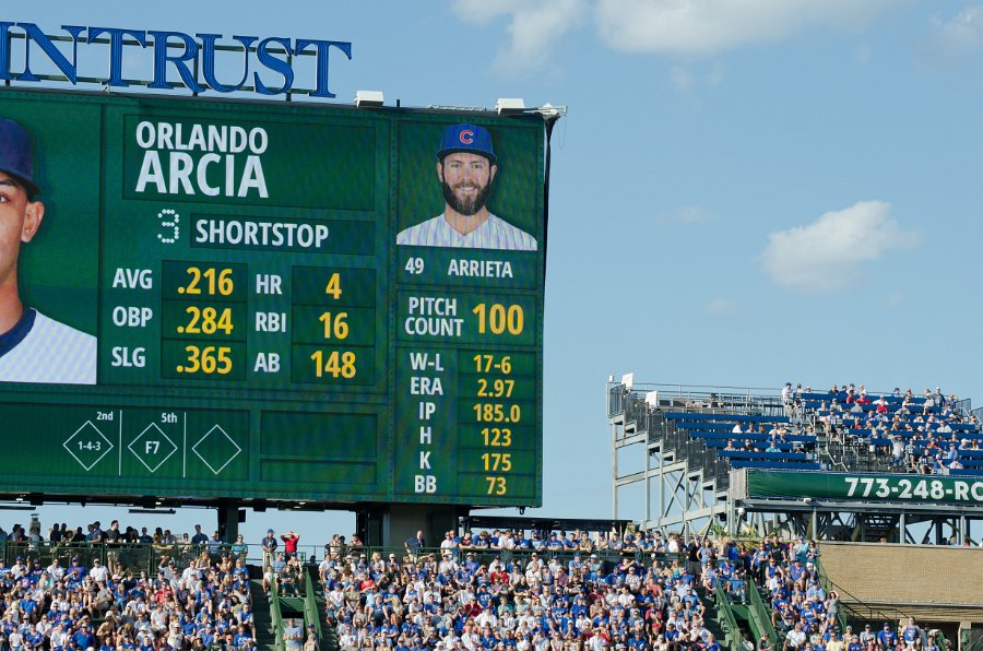 3214,10, 31. Cubs v Brewers 9/17/16 The retired Cubs numbers 14-Banks, 10-Santo, 31-Jenkins. Cubs vs Brewers at Wrigley Field, Cubs lose 11-3.