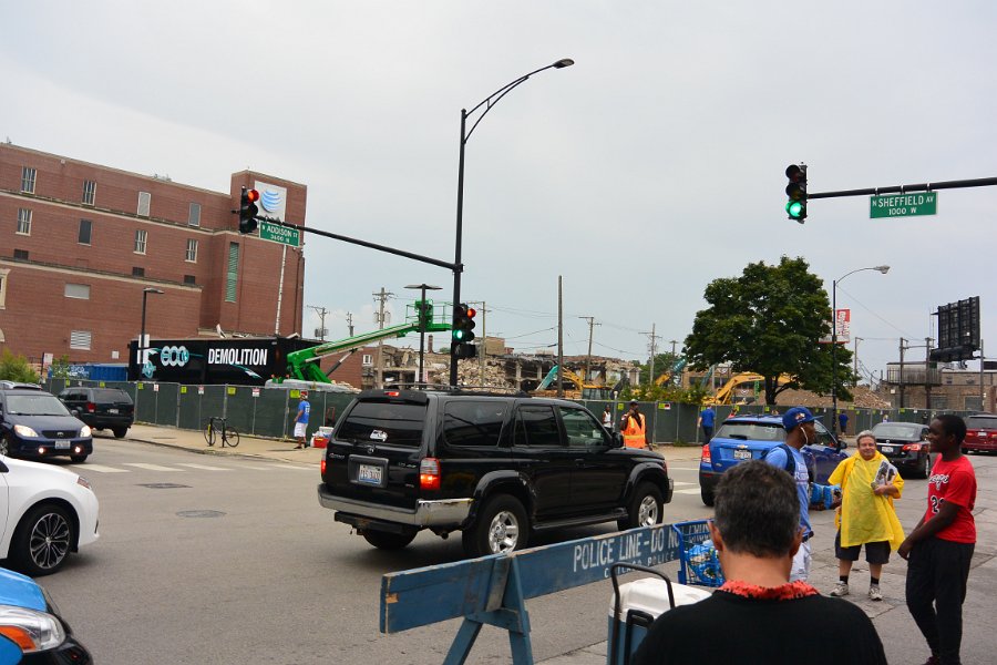 Loking North up Sheffield Ave at Addison. Cubs beat Pirates 8-7 in 13 innings at Wrigley Field
