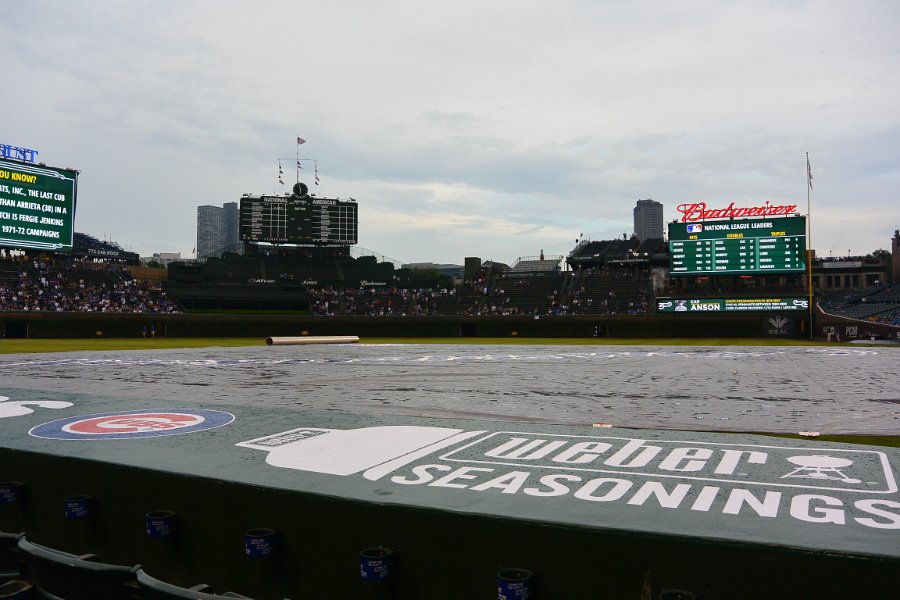 A little rainy before the start of the game. Cubs beat Pirates 8-7 in 13 innings at Wrigley Field