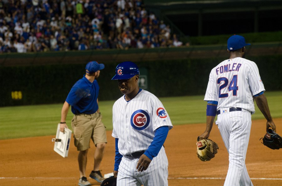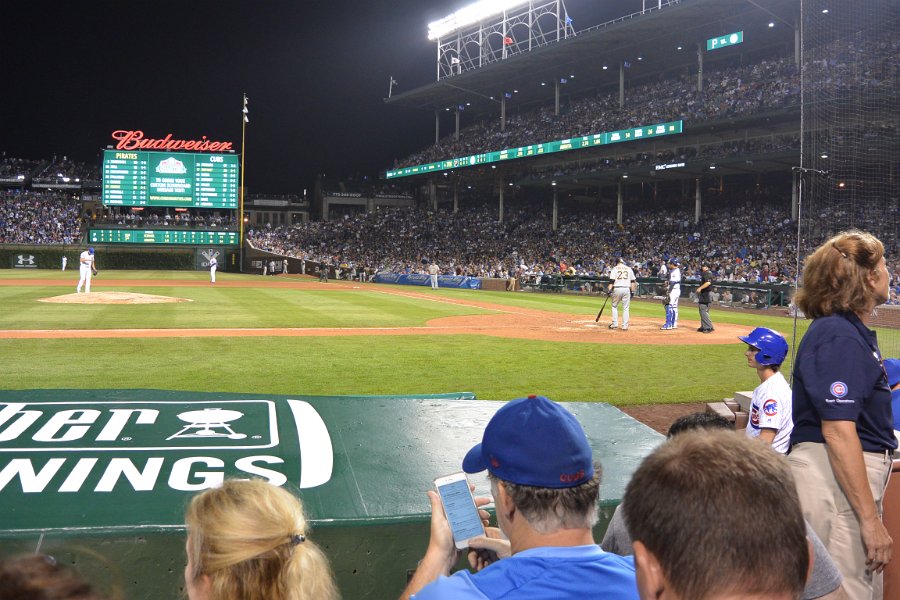 Bottom of the night, cubs loosing. Cubs beat Pirates 8-7 in 13 innings at Wrigley Field