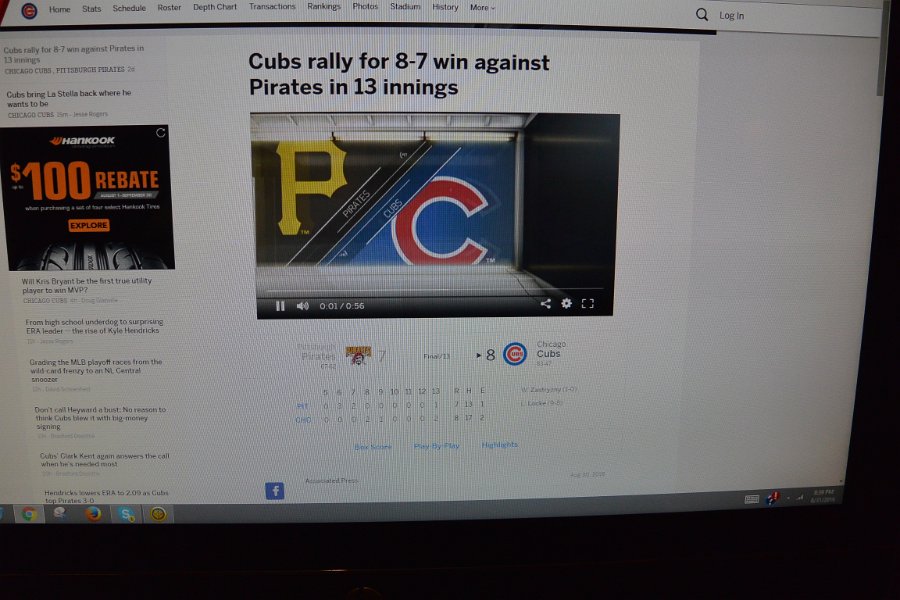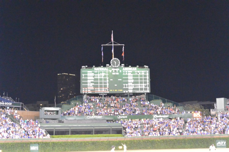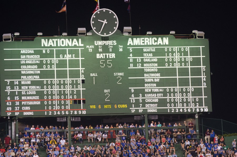 Scoreboard. Cubs beat Pirates 8-7 in 13 innings at Wrigley Field