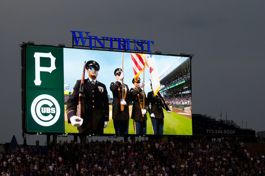 National Anthem. Cubs beat Pirates 8-7 in 13 innings at Wrigley Field