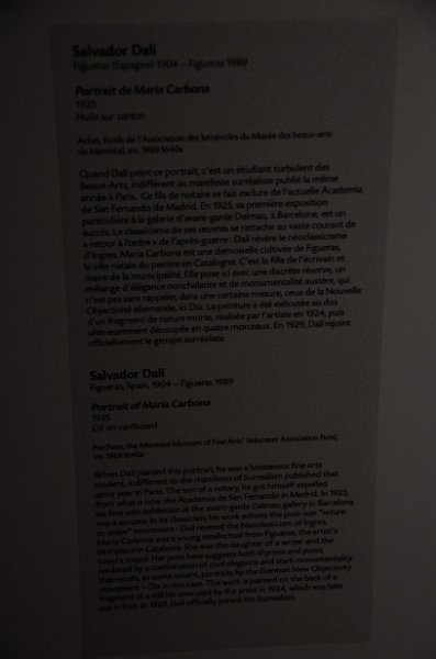 30Dali Portrait of Maria Carbona, painting by Salvador Dali, 1925. Musée des beaux-arts de Montréal / Montreal Museum of Fine Arts. Day 3 - New Year's Eve, Montréal