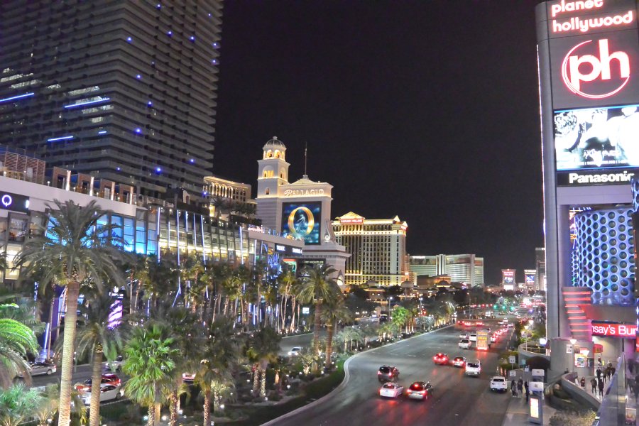 6 Las Vegas Strip Looking North along Las Vegas Strip; Bellagio center. Evening walk along Las Vegas strip |