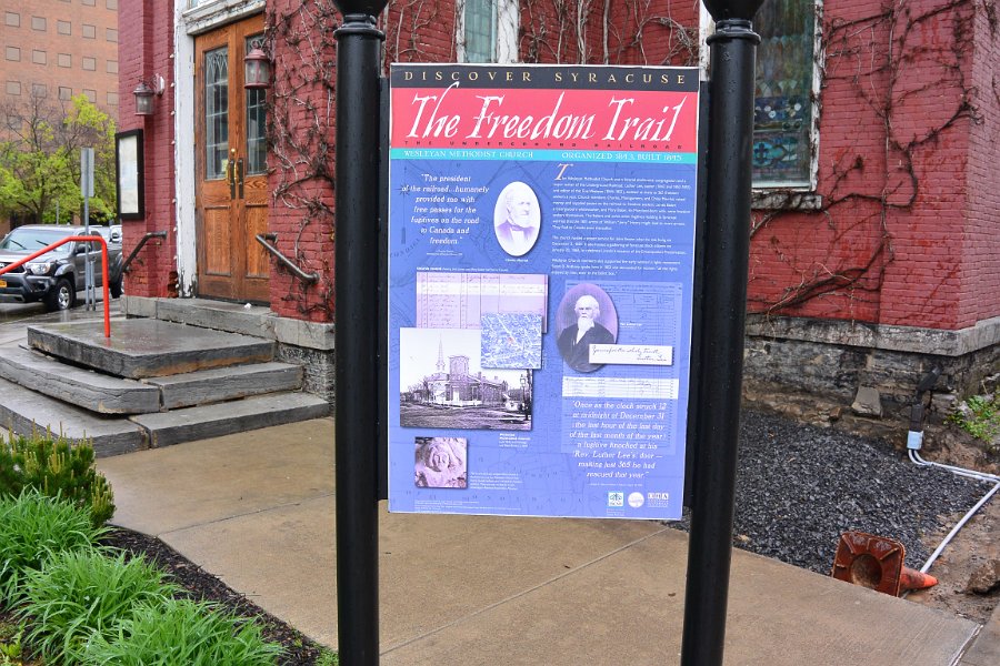 14Freedom Trail The Freedom Trail sign in front of the Mission. Downtown Syracuse walk