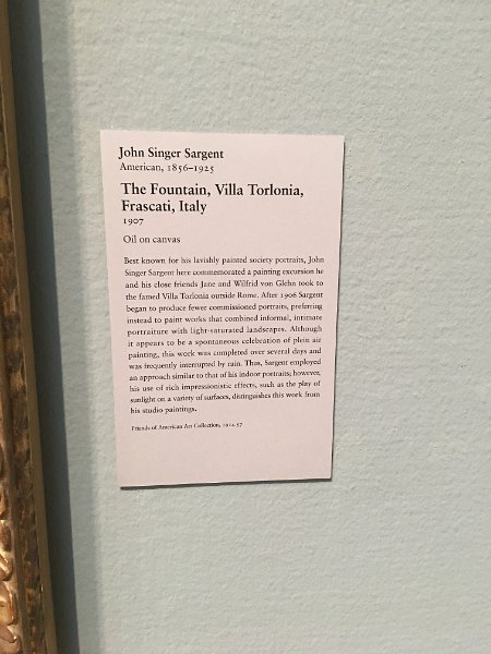 15 John Singer Sargent The Fountain, VIlla Torlonia, Frascati, Italy, painting by John Singer Sargent, 1907. Art Institute of Chicago |