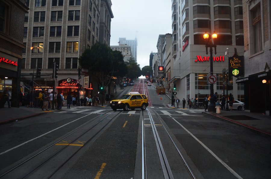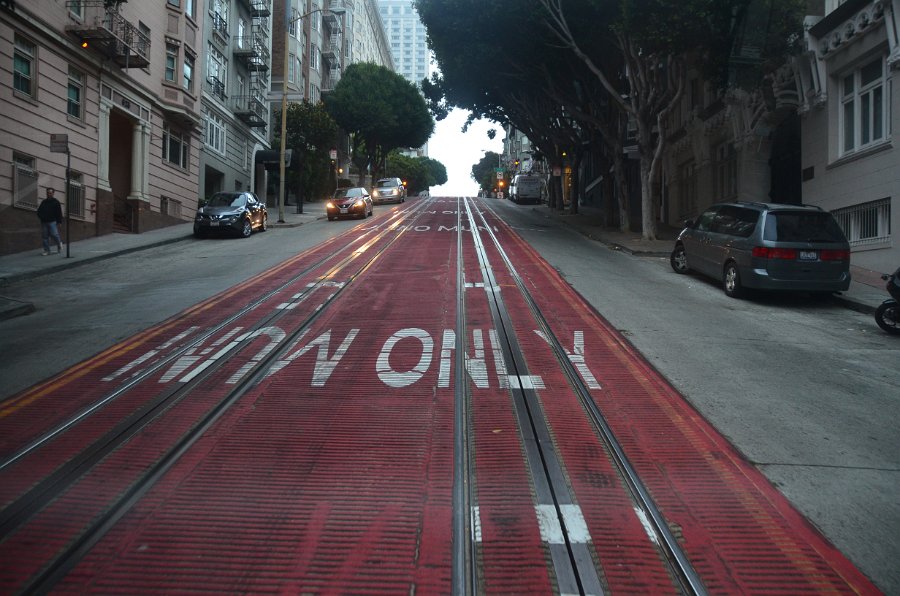 14 Heading North on the Powell/Maison/Taylor Cable Car Route to Fisherman's Wharf. San Francisco Cable Car loop