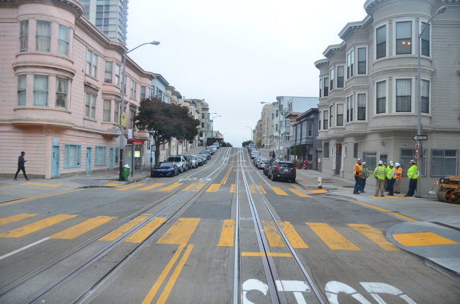 17 Heading North on the Powell/Maison/Taylor Cable Car Route to Fisherman's Wharf. San Francisco Cable Car loop