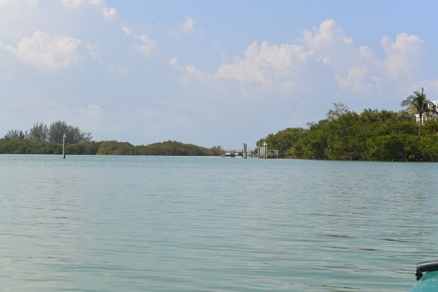 13 Kayaking around Buck Key. Started around the North tip of Buck,, South along the far side and then back up Roosevelt Channel, The tide was coming in, the wind was from the south and the water was very smooth.
