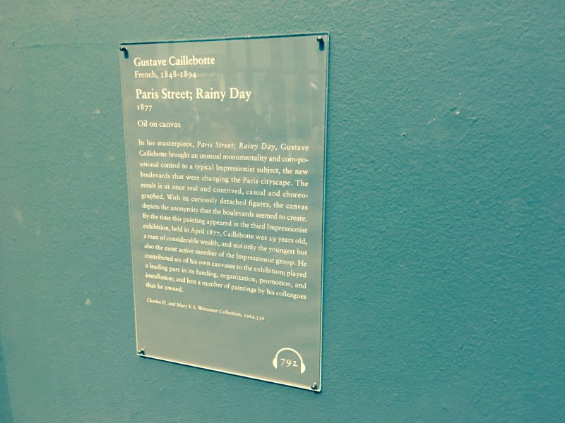 1 "Paris Street; Rainy Day" painting by Gustave Caillebotte, 1877. Cathie's Birthday afternoon at the Art Institute of Chicago |