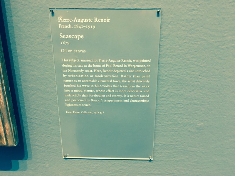 4 "Seascape" painting by Pierre-Auguste Renoir, 1879. Cathie's Birthday afternoon at the Art Institute of Chicago |