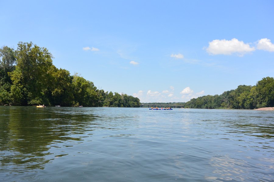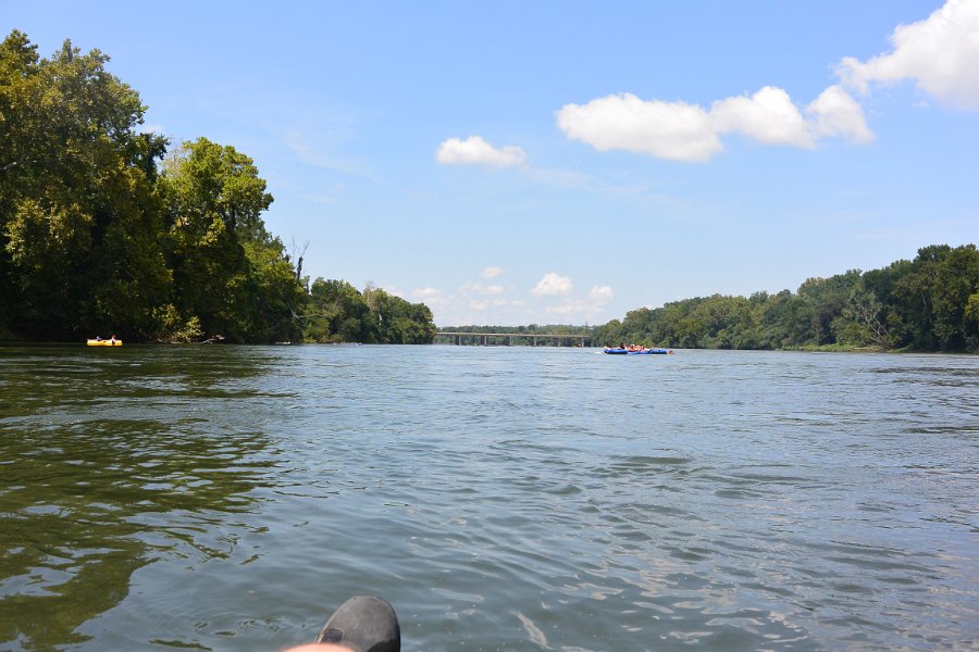 18Inner Tubing the Congaree River Approaching takeout point. Inner Tubing the Congaree River. Launching at the Gervais Bridge, taking out at Newman Boat Landing.