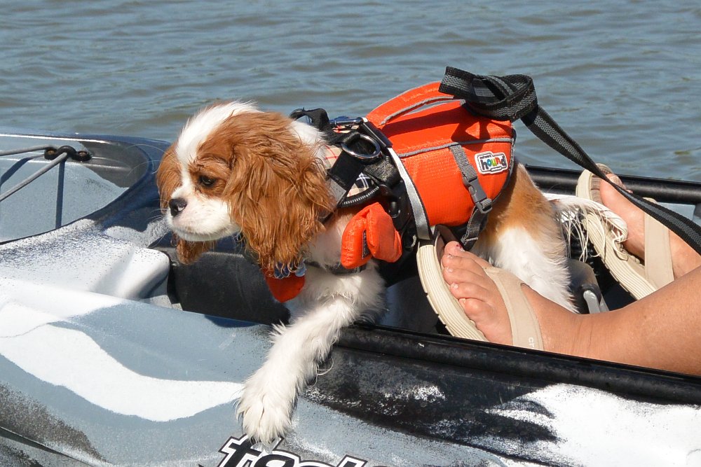 Doc's first paddle on a kayak. Good puppy!